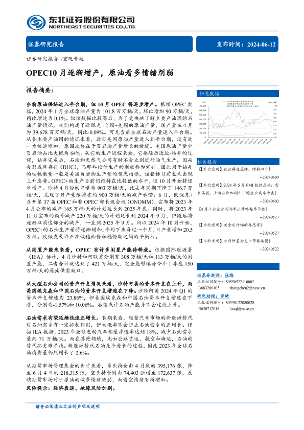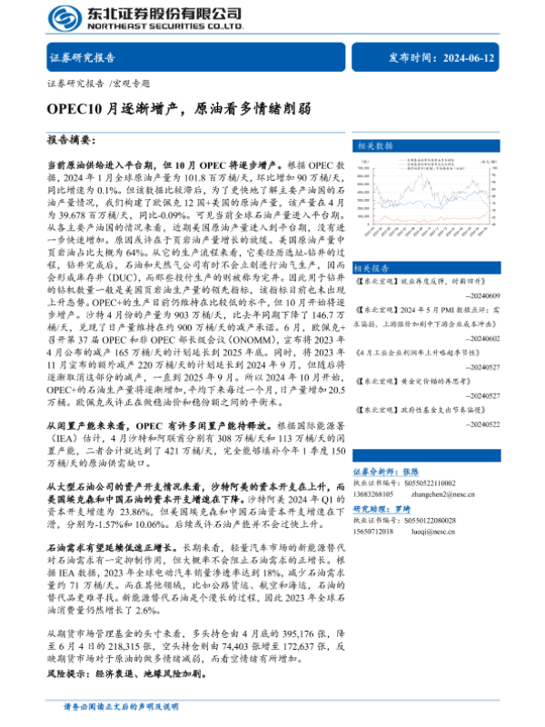 【东北证券】【20240612】OPEC10月逐渐增产,原油看多情绪削弱-15页