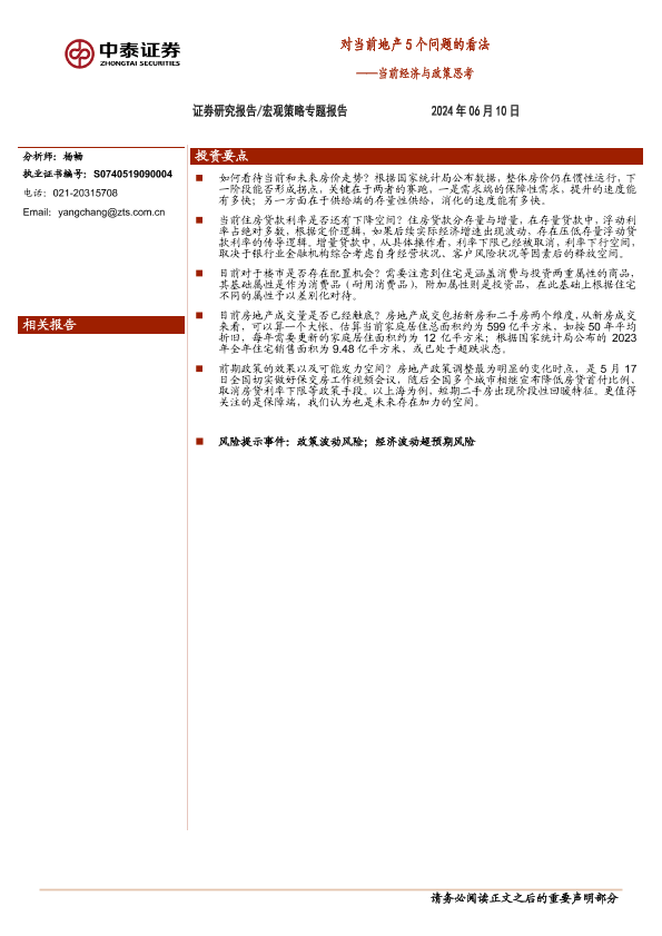 【中泰证券】【20240610】宏观策略专题报告:对当前地产5个问题的看法,当前经济与政策思考-11页