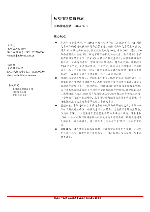 【首创证券】【20240612】市场策略报告:短期情绪或将触底-15页