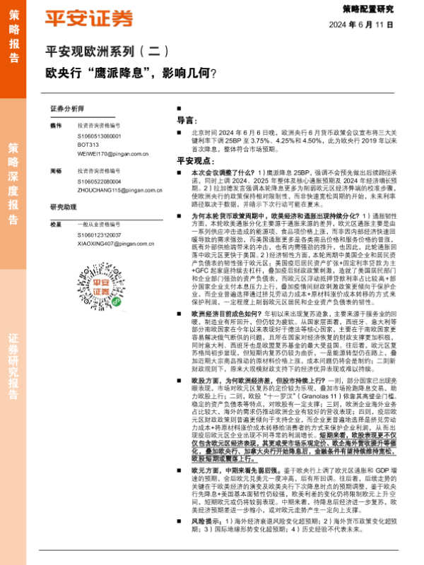 【平安证券】【20240611】欧央行“鹰派降息”,影响几何?-20页