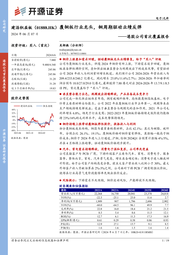 【开源证券】【20240607】建滔积层板(01888.HK)港股公司首次覆盖报告:覆铜板行业龙头,铜周期驱动业绩反弹-19页