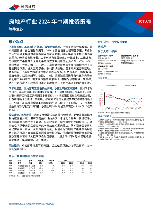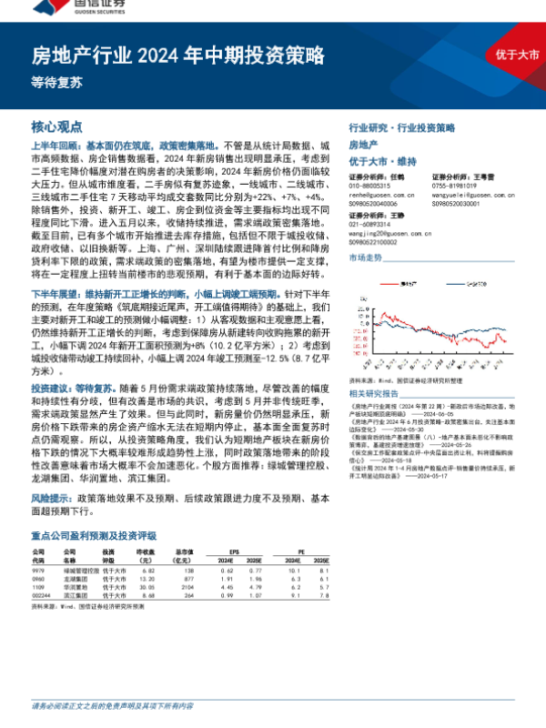【国信证券】【20240612】房地产行业2024年中期投资策略:等待复苏-19页
