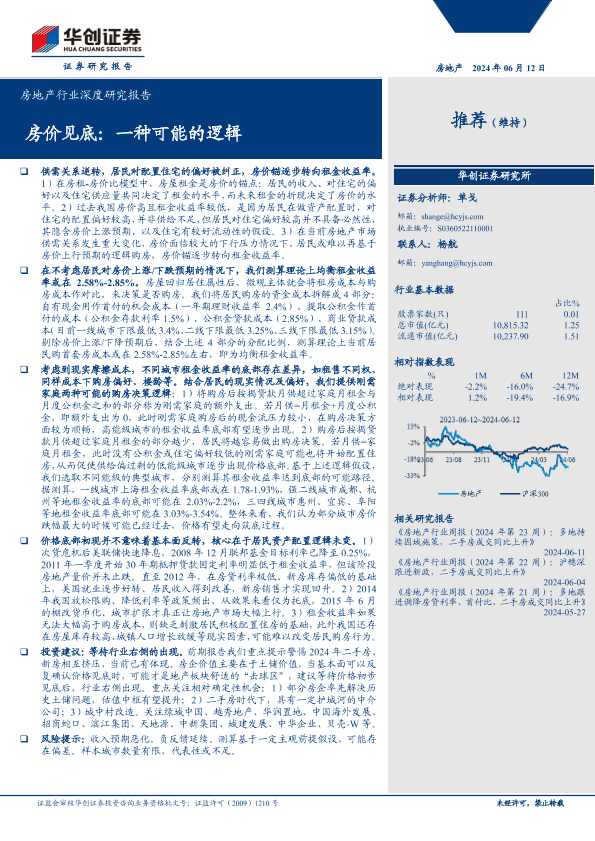 【华创证券】【20240612】房地产行业深度研究报告 房价见底:一种可能的逻辑-22页