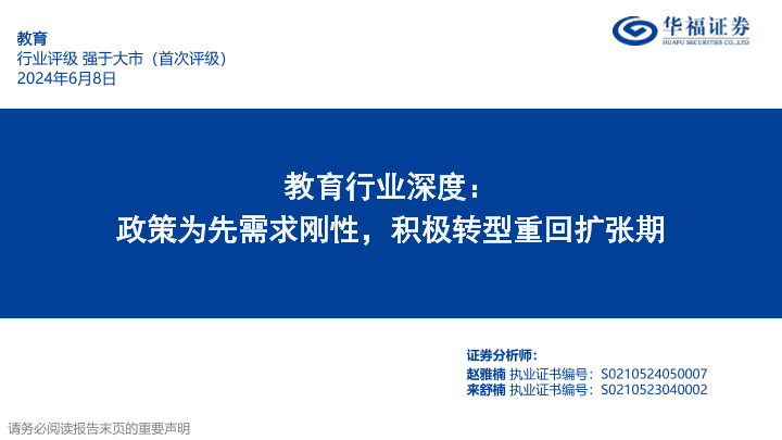 【华福证券】【20240608】教育行业深度:政策为先需求刚性,积极转型重回扩张期-46页