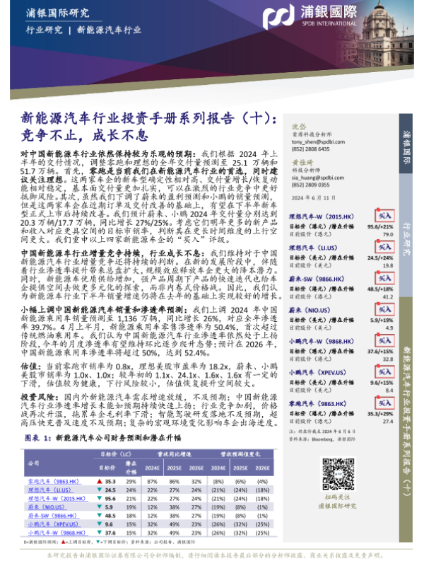 【浦银国际】【20240611】新能源汽车行业投资手册系列报告(十):竞争不止,成长不息-70页