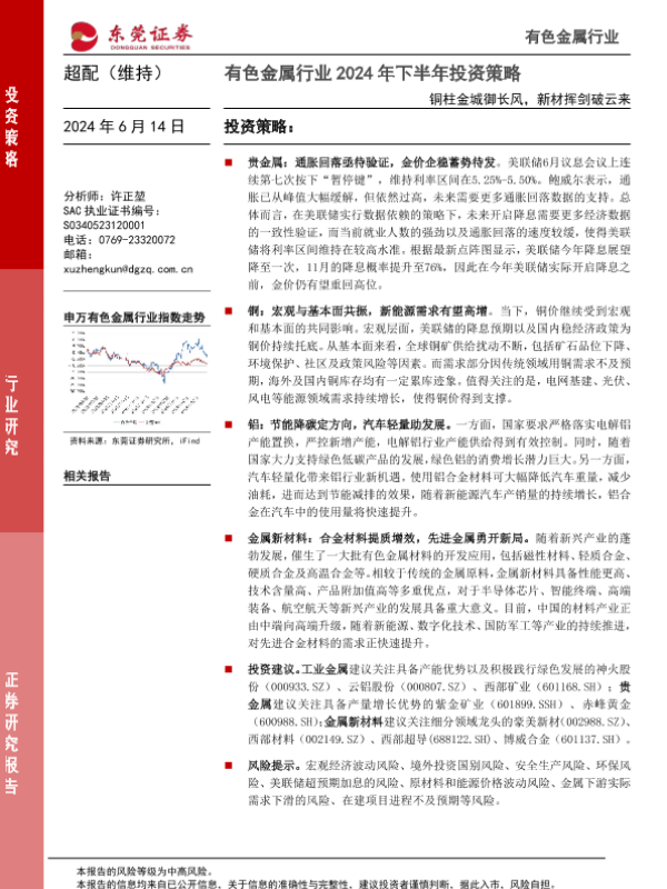 【东莞证券】【20240614】有色金属行业2024年下半年投资策略:铜柱金城御长风,新材挥剑破云来-36页