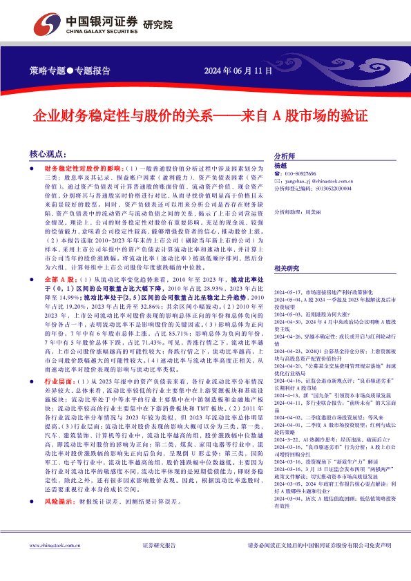 【银河证券】【20240611】企业财务稳定性与股价的关系——来自 A股市场的验证-15页