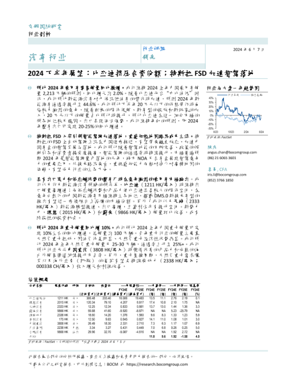 【交银国际】【20240607】2024下半年展望:比亚迪挤压合资份额;特斯拉FSD加速智驾落地-17页