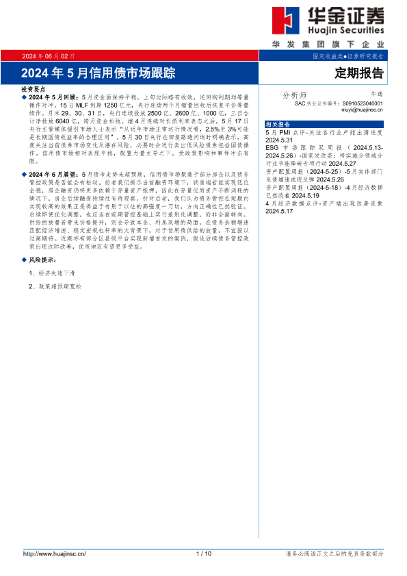 【华金证券】【20240602】2024年5月信用债市场跟踪-10页