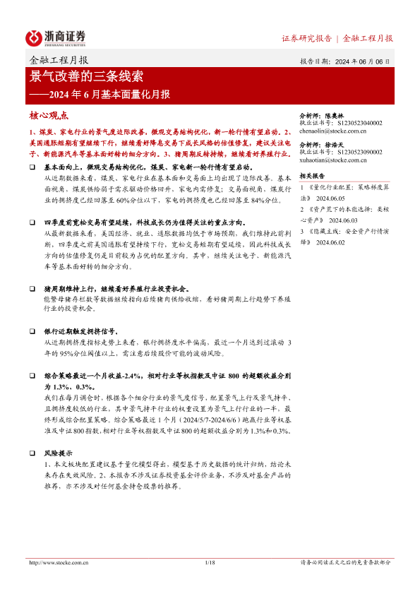 【浙商证券】【20240606】2024年6月基本面量化月报:景气改善的三条线索-18页