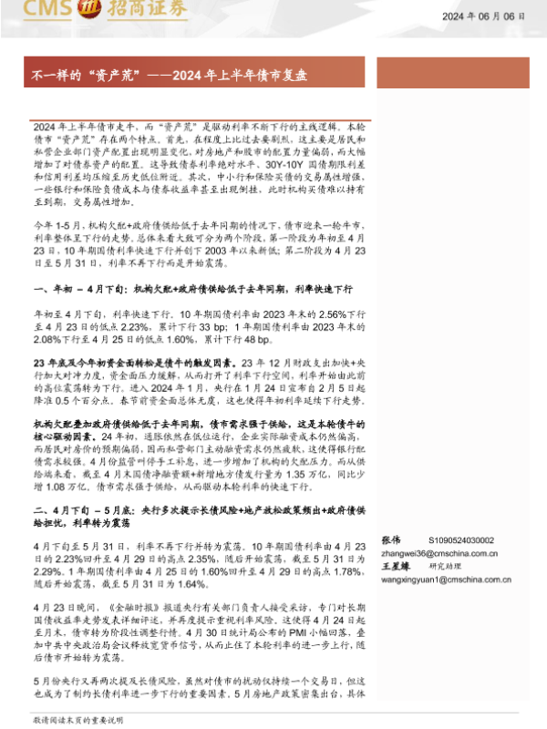 【海通证券】【20240606】2024年上半年债市复盘:不一样的“资产荒”-10页