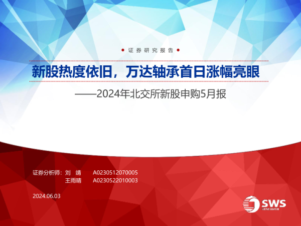 【申万宏源】【20240603】2024年北交所新股申购5月报:新股热度依旧,万达轴承首日涨幅亮眼-24页