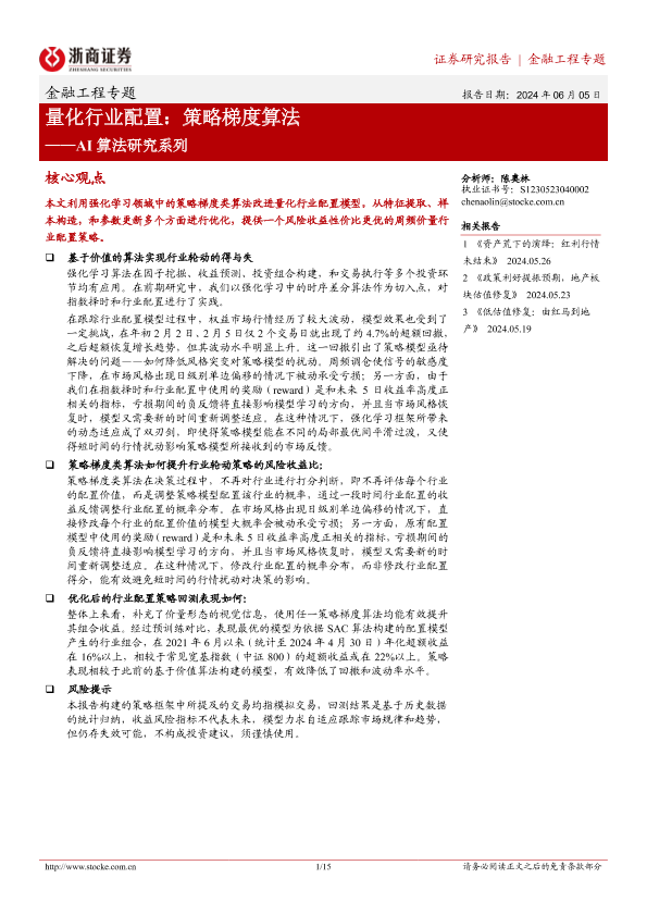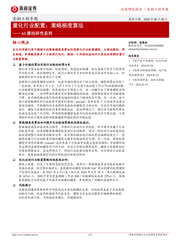【浙商证券】【20240605】AI算法研究系列-量化行业配置:策略梯度算法-15页