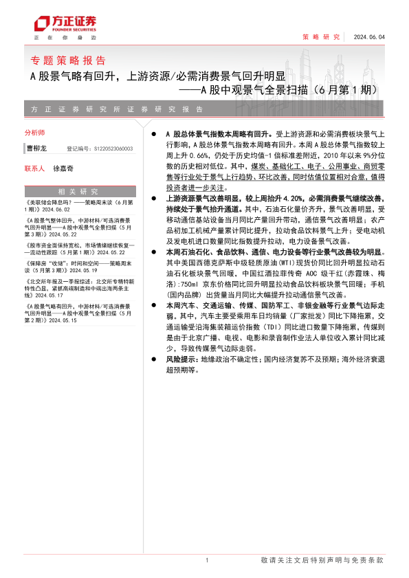 【方正证券】【20240604】A股中观景气全景扫描(6月第1期)-30页