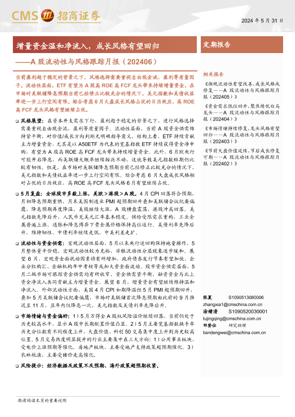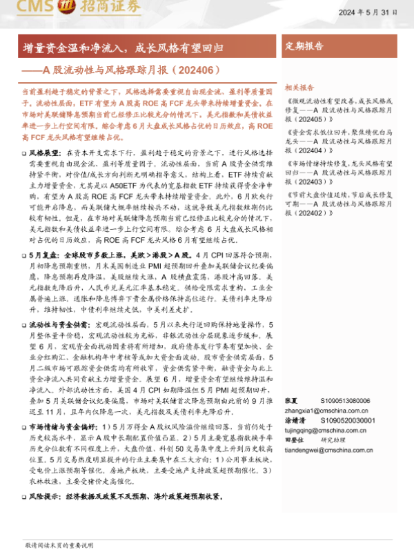 【海通证券】【20240531】A股流动性与风格跟踪月报(202406):增量资金温和净流入,成长风格有望回归-20页