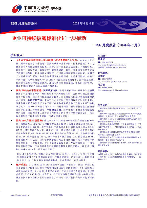 【银河证券】【20240604】ESG月度报告(2024年5月):企业可持续披露标准化进一步推动-18页