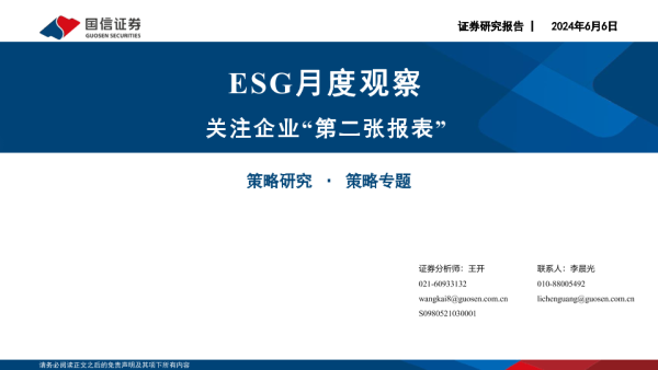 【国信证券】【20240606】ESG月度观察:关注企业“第二张报表”-19页