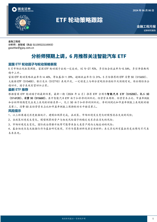 【国金证券】【20240606】ETF轮动策略跟踪:分析师预期上调,6月推荐关注智能汽车ETF-10页