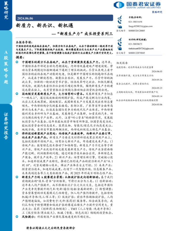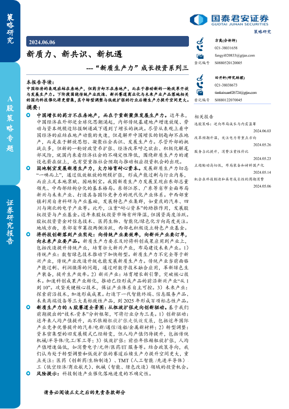 【国泰君安证券】【20240606】“新质生产力”成长投资系列三:新质力、新共识、新机遇-23页