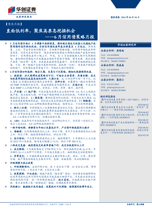 【华创证券】【20240604】6月信用债策略月报:直面低利率,聚焦高票息挖掘机会-32页