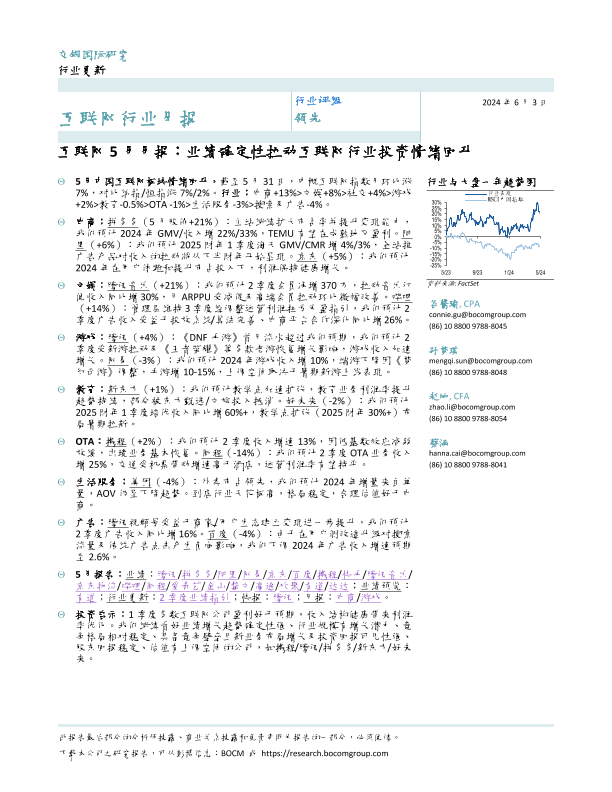 【交银国际】【20240603】互联网行业月报-互联网5月月报:业绩确定性拉动互联网行业投资情绪回升-12页