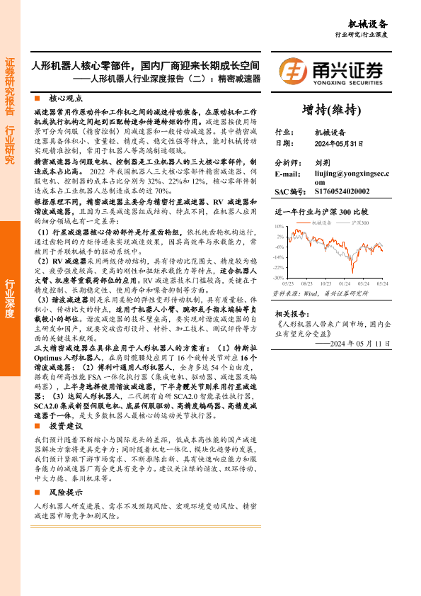 【甬兴证券】【20240531】人形机器人行业深度报告(二):精密减速器,人形机器人核心零部件,国内厂商迎来长期成长空间-24页