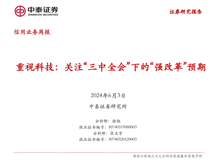 【中泰证券】【20240603】信用业务:重视科技,关注“三中全会”下的“强改革”预期-16页