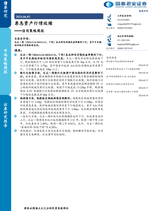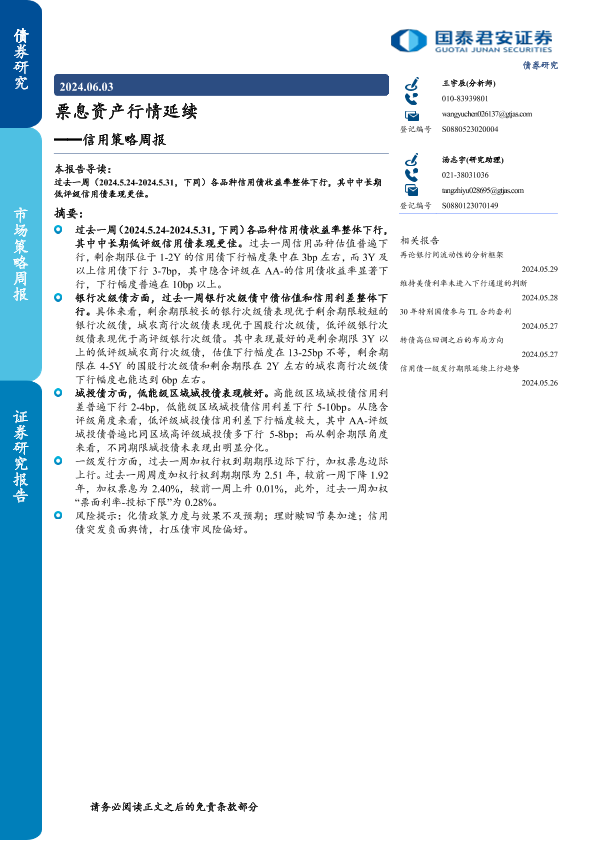【国泰君安证券】【20240603】信用策略:票息资产行情延续-10页