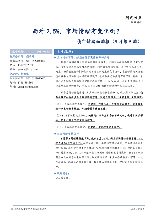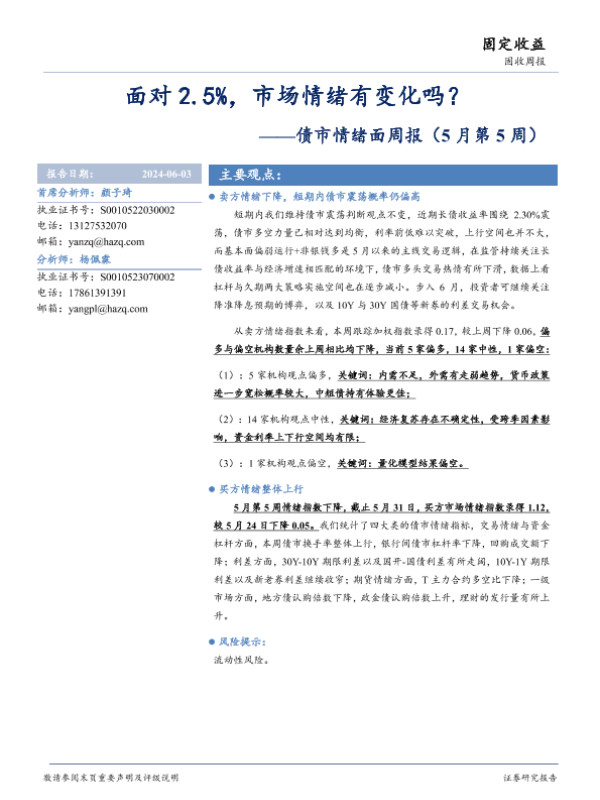 【华安证券】【20240603】债市情绪面:面对2.5%,市场情绪有变化吗?-14页