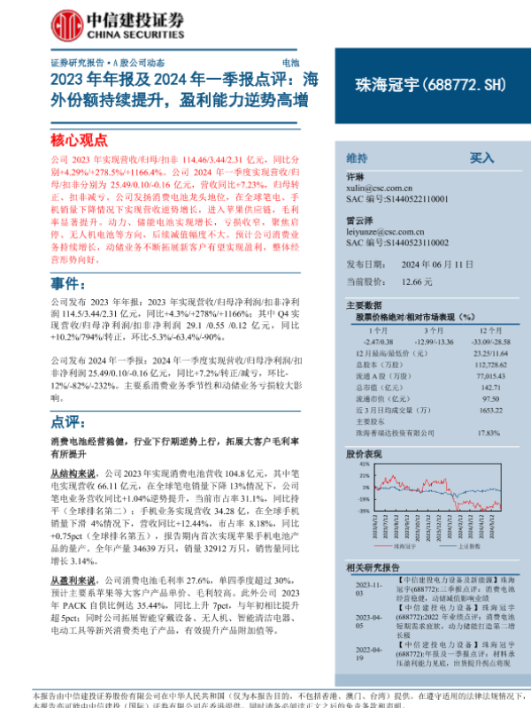 【中信建投证券】【20240611】珠海冠宇2023年年报及2024年一季报点评-11页