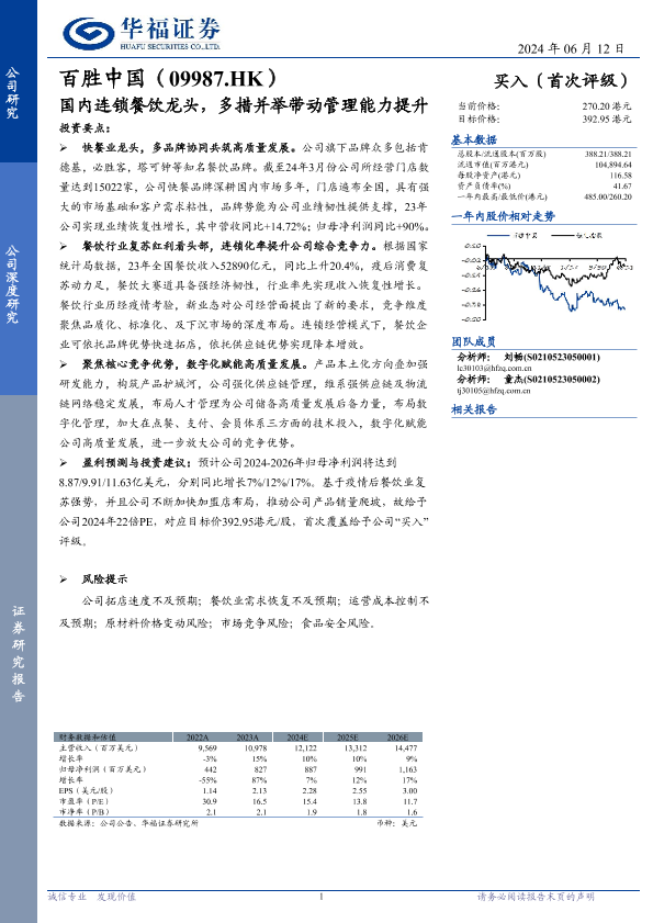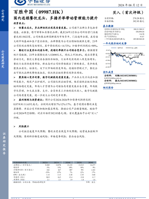 【华福证券】【20240612】百胜中国(09987.HK)国内连锁餐饮龙头,多措并举带动管理能力提升-15页