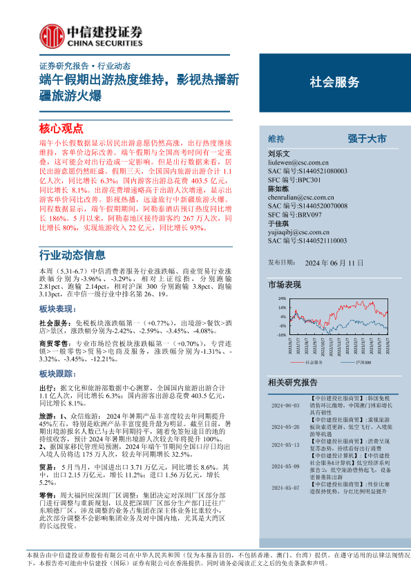 【中信建投证券】【20240611】社会服务行业:端午假期出游热度维持,影视热播新疆旅游火爆-34页