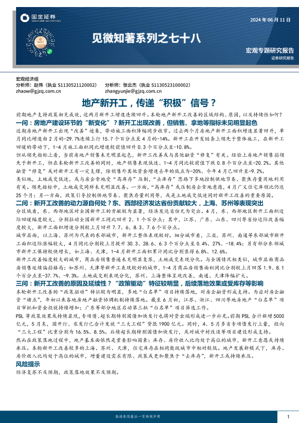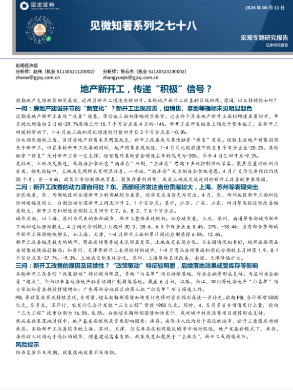 【国金证券】【20240611】见微知著系列之七十八:地产新开工,传递“积极”信号?-21页