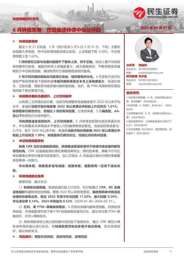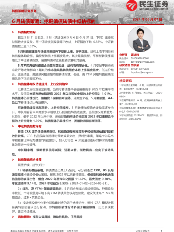 【民生证券】【20240607】6月转债策略:挖掘偏债转债中低估标的-19页
