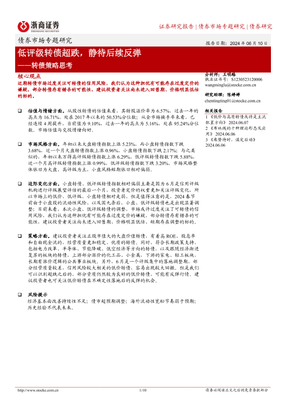 【浙商证券】【20240610】转债策略思考:低评级转债超跌,静待后续反弹-10页