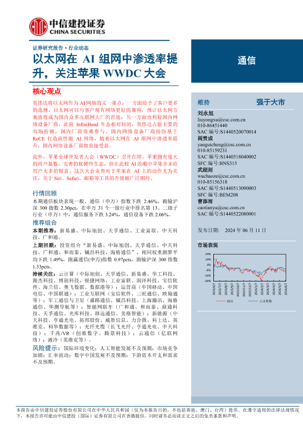 AI组网 以太网 市场分析 苹果WWDC 通信行业