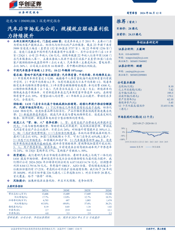 【华创证券】【20240612】途虎-W(09690.HK)深度研究报告:汽车后市场龙头公司,规模效应驱动盈利能力持续提升-34页