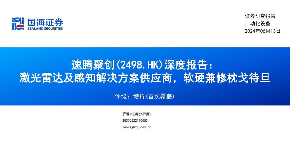 【国海证券】【20240613】速腾聚创(2498.HK)深度报告:激光雷达及感知解决方案供应商,软硬兼修枕戈待旦-39页