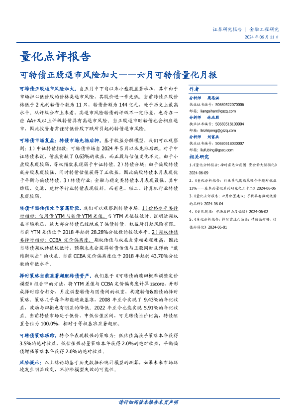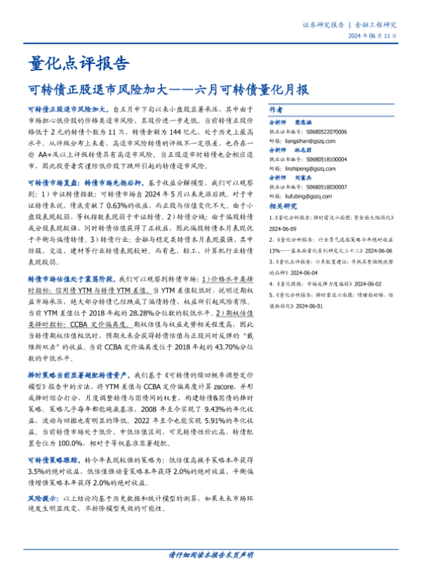 【国盛证券】【20240611】量化点评报告:六月可转债量化月报,可转债正股退市风险加大-17页