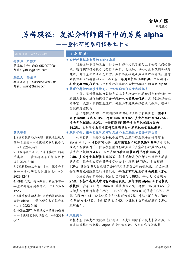 【华安证券】【20240612】另辟蹊径:发掘分析师因子中的另类alpha-30页