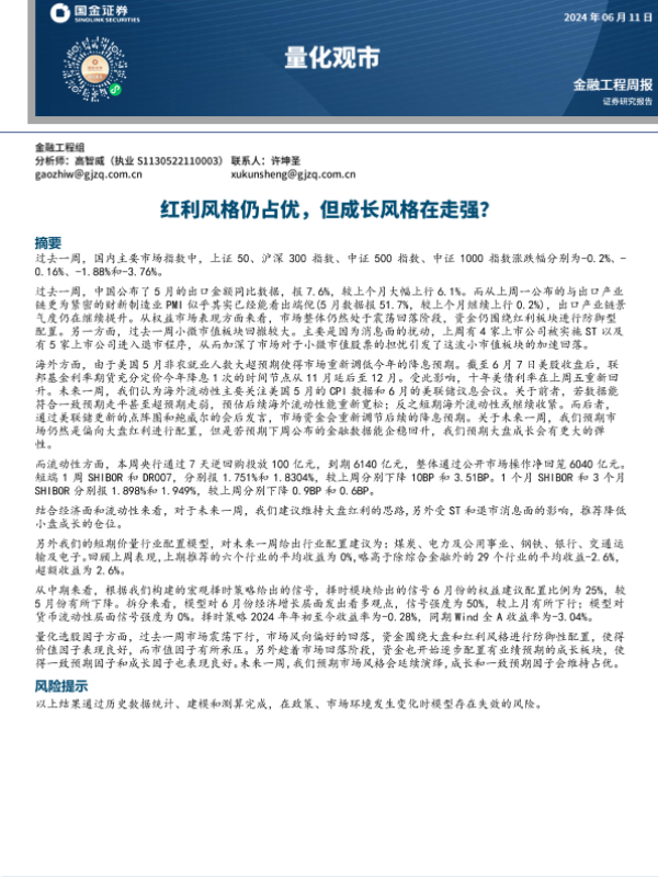 【国金证券】【20240611】量化观市:红利风格仍占优,但成长风格在走强?-14页
