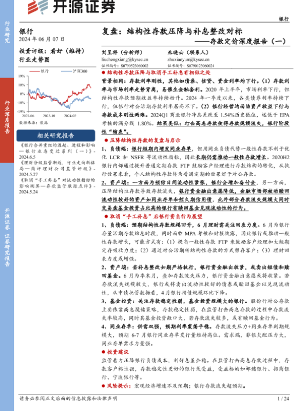 【开源证券】【20240607】银行业存款定价深度报告(一),复盘:结构性存款压降与补息整改对标-24页
