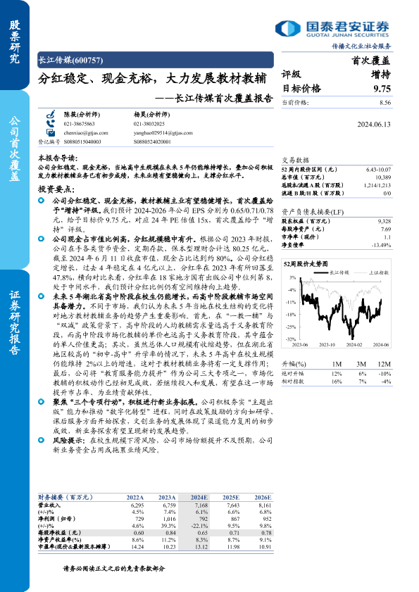 【国泰君安证券】【20240613】长江传媒(600757)首次覆盖报告:分红稳定、现金充裕,大力发展教材教辅-23页