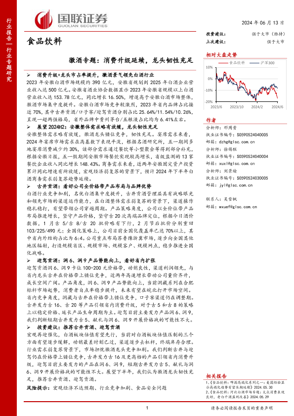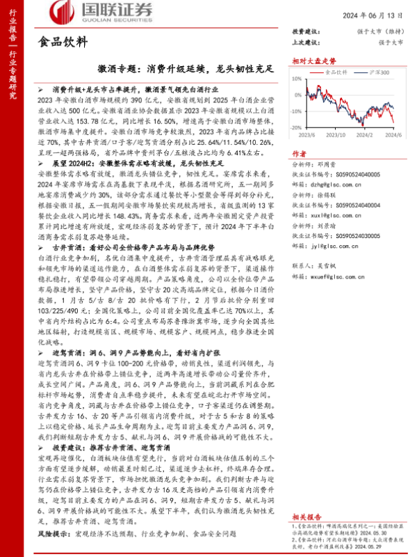 【国联证券】【20240613】食品饮料行业徽酒专题:消费升级延续,龙头韧性充足-10页