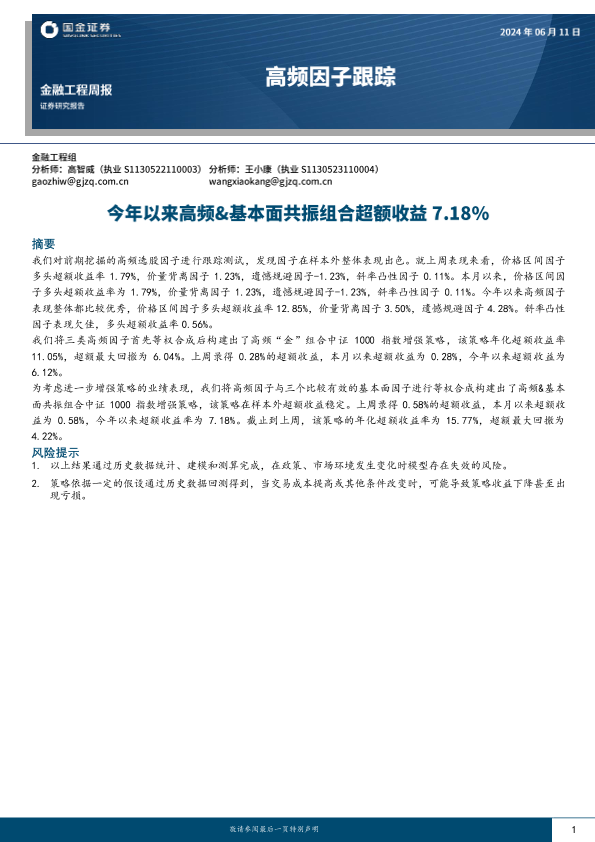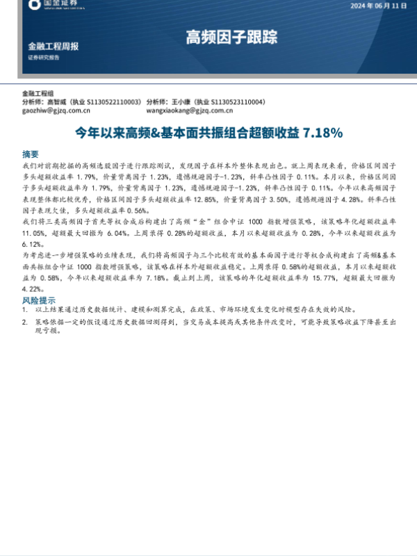 【国金证券】【20240611】高频因子跟踪:今年以来高频&基本面共振组合超额收益7.18%-15页