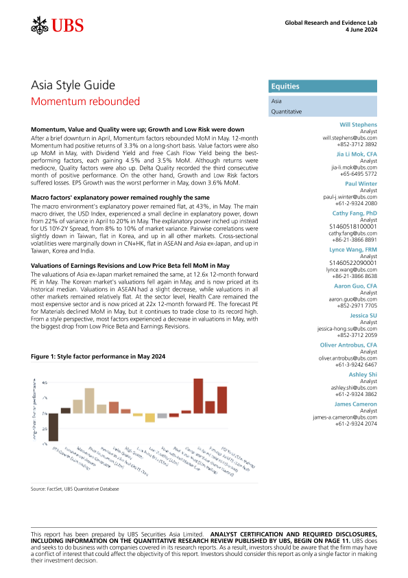 【UBS Securities Asia Limited】【20240604】Asia Style Guide Momentum rebounded-15页