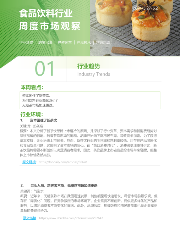 市场趋势 消费行为 行业观察 资本动态 食品饮料