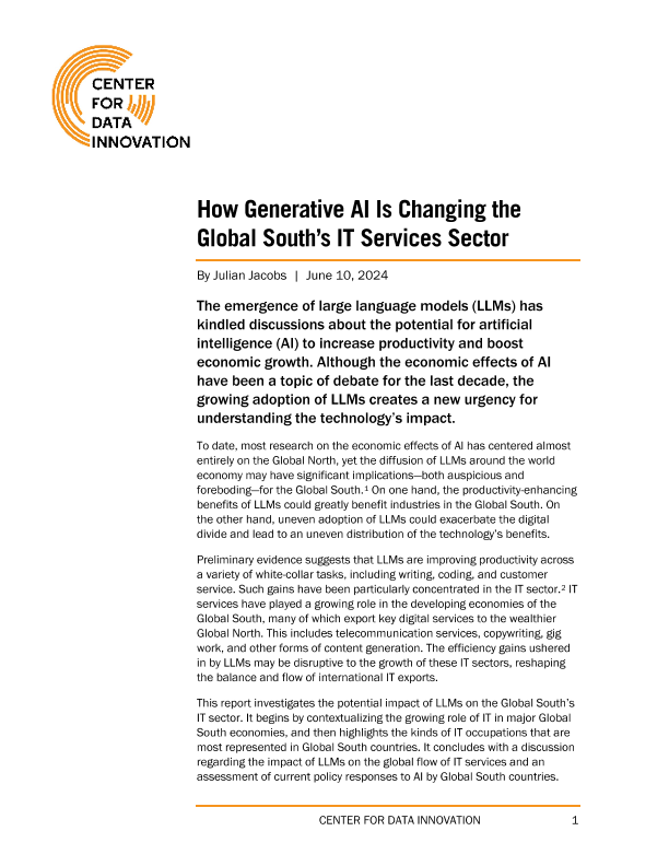 【CENTER FOR DATA INNOVATION】【20240610】世代人工智能如何改变全球南方的IT服务业-19页