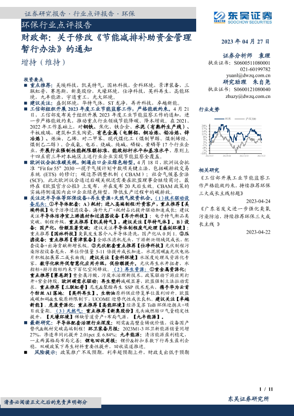 【东吴证券】【20230427】关于修改《节能减排补助资金管理暂行办法》的通知-11页