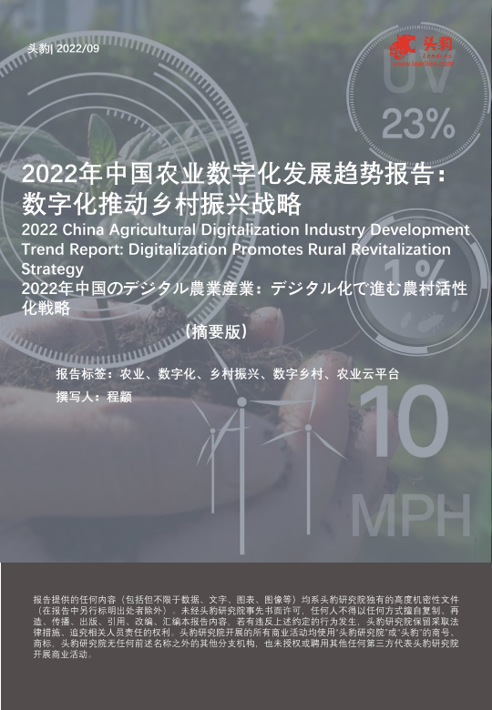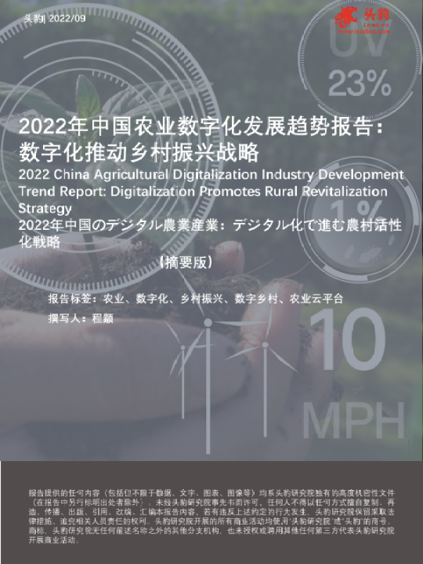 【头豹研究院】【202209】2022年中国农业数字化发展趋势报告:数字化推动乡村振兴战略-10页